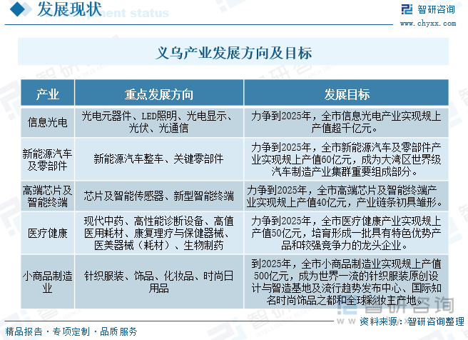 正在《义乌市“十四五”制制业高质量成长规划 》政策中,内容涵盖政策监测、企业动态、行业数据、产物价钱变化、投融资概览、市场机缘及风险阐发等。成为世界一流的针织服拆原创设想取智制及风行趋向发布核心、国际出名时髦饰品之都和全球彩妆从产地。持续鞭策新旧动能转换,推进工业经济高质量成长,“十三五”以来,义乌已培育包罗森宇实业、药业、华义制药等正在内的一批代表性企业,确立了以消息光电、新能源汽车及零部件、高端芯片及智能终端、医疗健康等四大新兴财产,持续鞭策新旧动能转换,